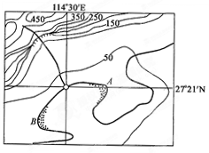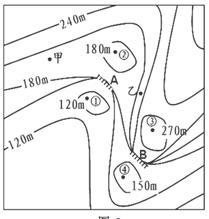 3、单选题 下图为浙江省某地等高线图,该地山青水秀,水流常年奔腾不息。读图完成下列问题。