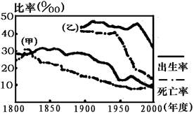 2、单选题 该图是甲.乙两国人口变化的曲线图,读后分析完成下面3题: