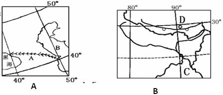 (2)B的东岸冬季气温比C北岸要低的多。纬度B的东岸比C北岸要高,冬季正午太阳高度角小,白昼比较短;并且离冬季风源地近,受冬季风影响强烈,气温低;B的东岸没有什么高山阻挡,而C的北岸受高大的喜马拉雅山的阻挡,受冬季风影响比较小,冬季气温偏高。(5分)