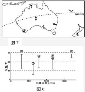 小题3:在图8所示的几种气温年内变化和年降水量情况中,与P地相符的是