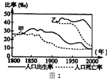 2、单选题  图1是甲、乙两国人口变化曲线图,以下有关图中信息的正确说法是