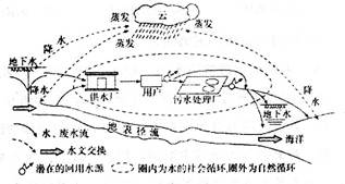 (注:水的社会循环是指在水的自然循环当中,人类不断利用其中的地下径流或地表径流满足生活与生产之需而产生的人为水循环。)