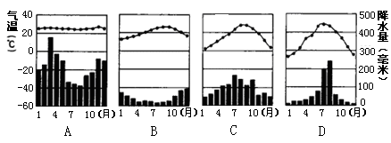 3、单选题 对下图中四种气候类型判断正确的是( )