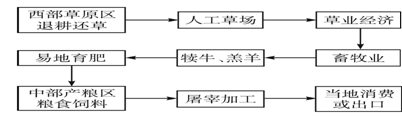 2、单选题 读“东北地区中、西部的草业—畜牧—加工业复合发展模式图”,完成:
