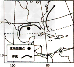 3、单选题 2010年4月20日,墨西哥湾发生漏油事件,造成严重海洋污染,有关专家担心浮油可能’,甚至漂向欧洲沿岸。下图是墨西哥湾海域示意图,读图回答1~2题。