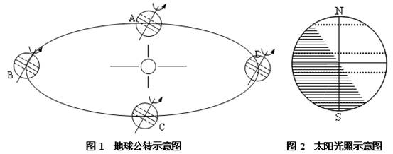 (1)在图1中地球公转轨道上用箭头表示出地球公转的方向。