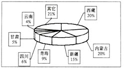 2.根据图中各省所占的比重分析,内蒙古、新疆、西藏所占比重高,我国内蒙古、新疆为干旱、半干旱地区,降水稀少,地表植被以草原和荒漠为主。所以本题选择A选项。