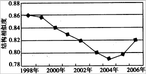 (4)图中2004年到2006年该地区制造业结构相似度的变化趋势,既体现该地区行业结构调整的合理性,