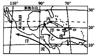 C.甲沿岸有寒流经过,降水少;乙处有暖流影响,降水多