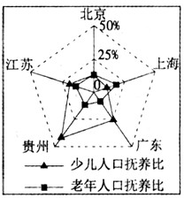 D、江苏的少儿人口抚养比小于北京