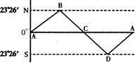 3、单选题 读太阳直射点周年移动轨迹示意图,完成问题。1.当太阳直射B点时,正午太阳高度达一年中最大值的温度带是