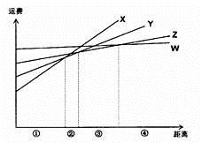 1.表示水运运输方式的是2.宜采用铁路运输的距离区间是