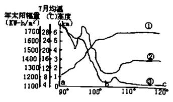 3、单选题 下图为我国沿30°N纬线方向,几个地理参敷(见纵坐标)的变化趋势示意图,读图回答下列问题。