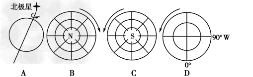 1、单选题 该图中,正确表示地球自转方向的是(?)