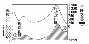 4、单选题 下图是“沿37°N世界某地地形剖面及降水量分布图”,读图完成下列各题。
