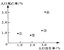 3、单选题 下图反映四个国家的人口出生率和死亡率,回答小题。