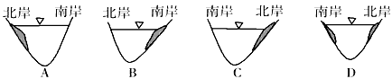 5、单选题 下图中阴影部分为河流堆积物,受地转偏向力的影响,正确表示南半球河流自西向东流的是