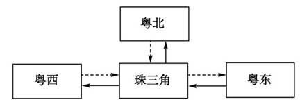 1、单选题  下图为“珠三角与周边地区区域合作示意图”。读图完成题。