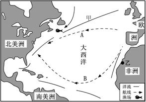 (2)图中洋流甲按性质属于        ,其对沿岸气候起到          的作用。(2分)