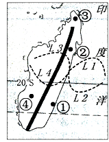 2、单选题 读非洲某岛屿图(图中的黑粗线为山脉,虚线为等温线),读图回答下题。