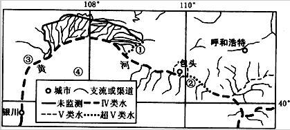 B、①河段水质较差,主要由于该河段上游支流植被覆盖差,水土流失严重