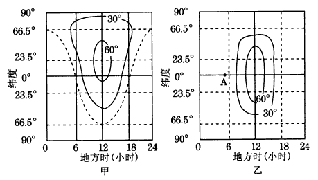 (2)此时,甲图反映的太阳高度空间分布规律是______________________________________________。
