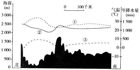 1、单选题 下图为我国某区域地形剖面及相关气候资料图,读图完成1~2题。
