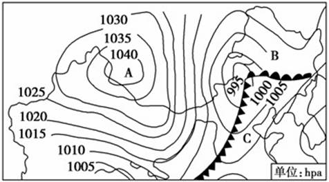 (1)此时,A地处于 (天气系统)控制下,其中心气流在水平方向上呈 流动,A地此时的天气状况是 。