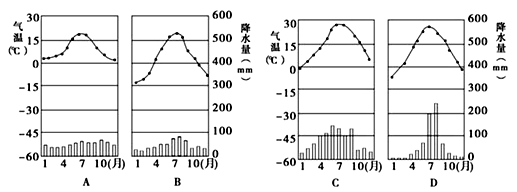 (4)下列四幅图中,符合我国华北地区主要气候类型的是 。
