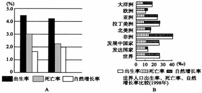 (1)图A所代表的地区人口增长模式为_________模式;图B中,人口增长属于此模式的地区有_____________________________________等。