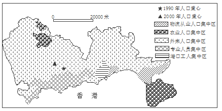 小题2:深圳市1990年—2000年人口重心变化的主要原因是