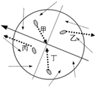 2、单选题  该图示圆圈为台风系统,该系统分成四个区域,短箭头表示风,长箭头表示台风整体移动方向,回答11~12题。