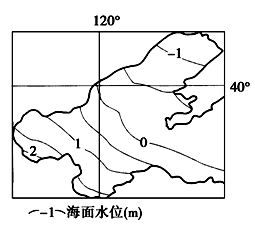 (1)根据图中海区的海面水位,东部部水浅,西南部水深,说明风把海水吹向西南方向,所以应是东北风。海水被吹向西南部,所以 渤海湾、莱州湾沿岸受灾严重。
