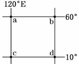 1.若bd经线的经度为150°E,则ab、bd、cd、ac四段经纬线的比例尺的大小关系是2.若b点比a点的时间早10小时,则?