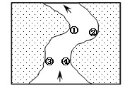 1、单选题 下图为某河段示意图,箭头表示河流流向。读图回答1~2题。