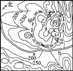【小题3】图中的四条线路,只有甲线路穿过的等高线最少,坡度最和缓,工程造价低,古应该选甲线路。