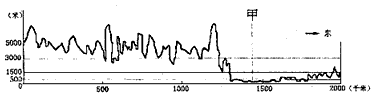 2、单选题 下图为“我国某地区某一纬线附近地形剖面示意图”。读图回答1—2题。