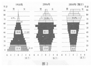 3、单选题 图2为亚洲某国人口金字塔图,读图回答下题。