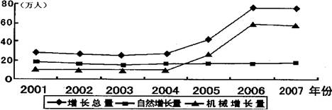 3、单选题 读“2001-2007各年度江苏人口增长情况图",回答下列各题。