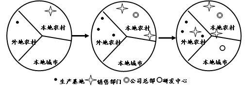 4、单选题 读某农产品加工企业空间扩张过程示意图,完成问题。