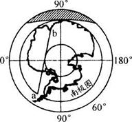 5、单选题 读“南极地区图”,阴影部分为黑夜,读图完成问题。