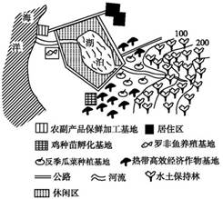 1、单选题 读“某岛屿的文明生态湖区规划图”,回答问题。