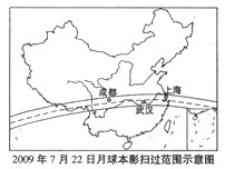 1、综合题  2009年7月22日上午上海将能观察到一次壮观的日全食。读图回答问题。