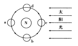 1、出现日全食时,月球在图中的位置是