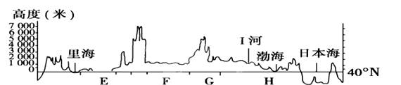 5、单选题 读沿40°N亚洲东西向的地形剖面图,完成下列小题。