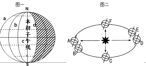 2、综合题 图一为“ 太阳光照图”(阴影部分表示夜半球)和图二为“地球公转图”,读图完成下列各题。(14分)