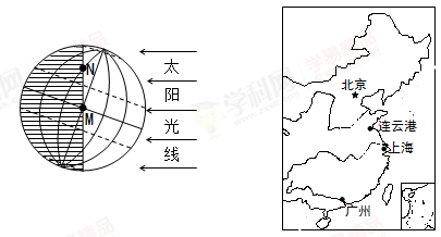(3)此日,连云港昼夜长短状况是 ,右图中四个城市正午太阳高度最大的是 。(2分)