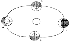 3、单选题 读下面地球公转图(阴影表示夜半球,内圆表示极圈,中心表示北极点),回答: