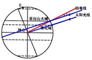 F.此刻E地和亚历山大城所看到的太阳方位相反