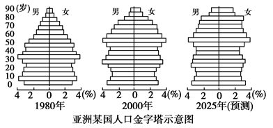 5、单选题 下图反映了亚洲某国人口增长与构成变化及其发展趋势,据此回答下题。